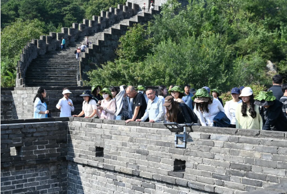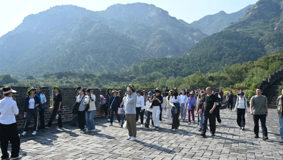 九门口水上长城以其“城在水上走,水在城中流”的独特景观闻名遐迩。沿着蜿蜒的长城城墙拾级而上,一边欣赏着两侧层林尽染的秋日盛景,一边感受着古代军事防御工程的雄伟壮观。途中,大家相互搀扶、彼此鼓励,时而驻足拍照留念,时而交流着工作与生活中的趣事,欢声笑语回荡在长城内外。