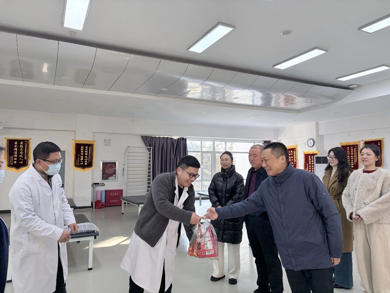 2月16日上午,河北省康复医院党委书记周军、副院长杨伟海、副院长刘新带领党办、院办、工会等部门负责人,深入临床一线岗位,看望慰问坚守一线的医护人员,送上新春祝福与暖心慰问品。