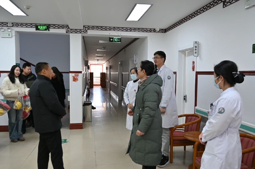 慰问团一行带着浓浓的关怀,先后来到病房楼、康复大厅、老年医养中心、门诊、护士站等治疗区和科室,与患者们亲切交谈,关切地询问他们的恢复情况,嘱咐他们安心养病、积极治疗,争取早日康复,并送上了节日祝福。