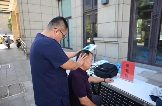 活动当天,来自河北省康复医院的医护人员们有条不紊地为居民们提供各项医疗服务。此次义诊内容丰富多样,涵盖了测血压、中医把脉问诊、康复按摩等多个项目。
